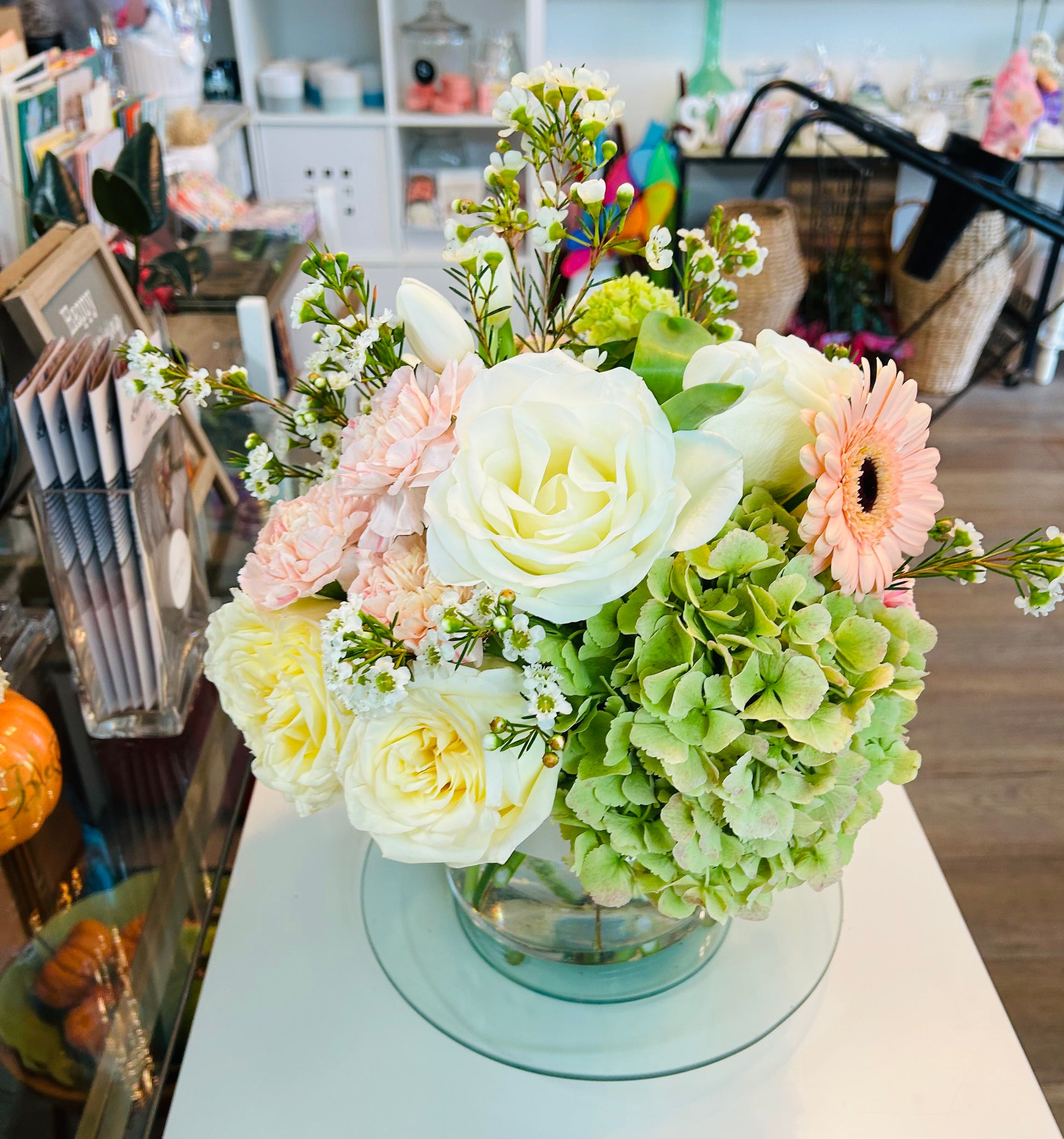 This flower arrangement is seasonally unique, flowers selection will be the designer’s choice based on the seasonal availability. The colour scheme and style will be very similar to what’s shown on the image.