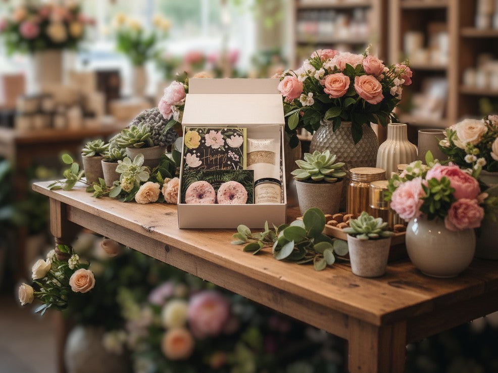 Delight your loved one with delicious chocolates, and a luxurious self-care collection featuring a scented candle, botanical bath salts for a relaxing soak, and fragrant donut bath bombs. All beautifully presented in an elegant white gift box, perfect for celebrating their birthday in style.